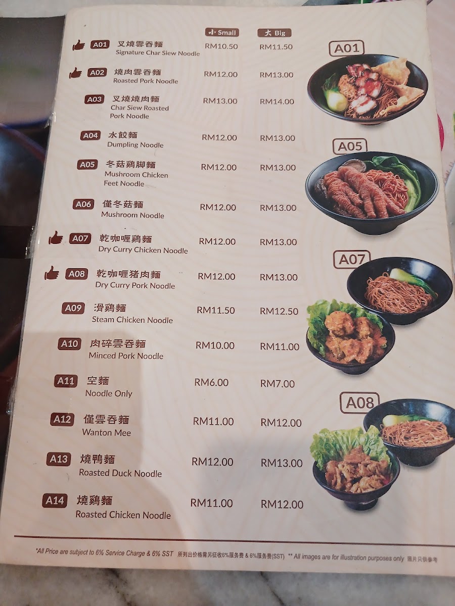 - Other Signature Dishes: The menu also includes well-known items such as Wanton Noodle, Wan Tan, Curry Pan Mee, Charcoal Grill Bread, Roast Duck, Taiwan braised meat rice (台式卤肉饭), Kaya Butter Toast, Claypot Loushi Fan, Chilli dishes, and a Dinner Set comprising four bowls including rice, soup curry pork, salted egg pork ribs, kung pao chicken, and vegetables. Chee Cheong Fun is also available as a lighter option.
